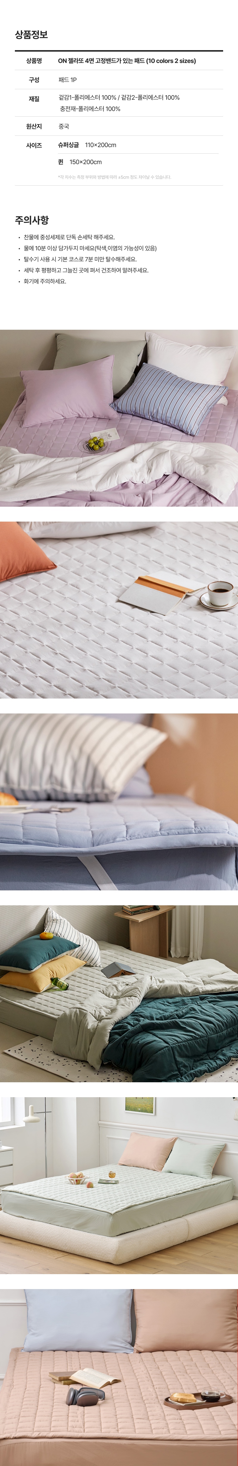 ON 젤라또 4면 고정밴드가 있는 패드 (10 colors 2 sizes)
