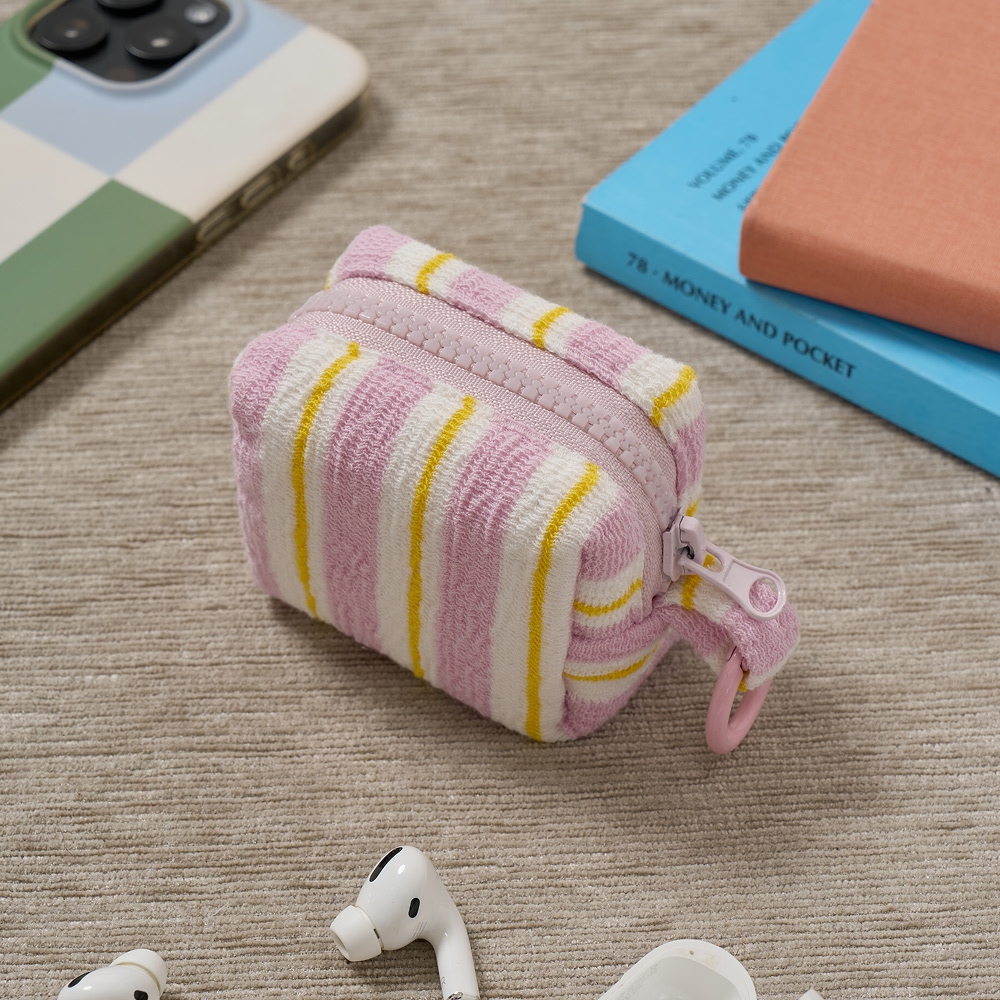 [etf] 위캔드 테리 멀티 스트라이프 미니 키링 파우치 핑크