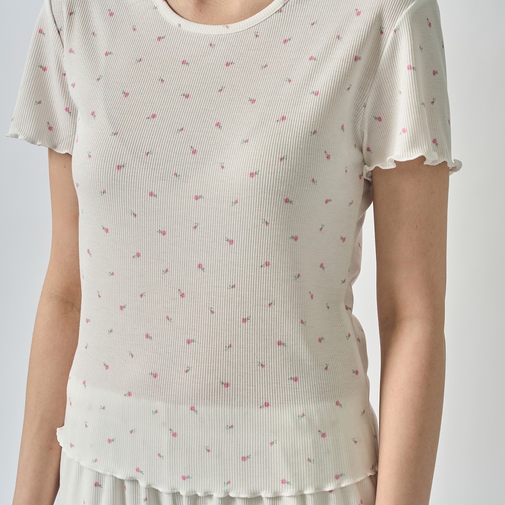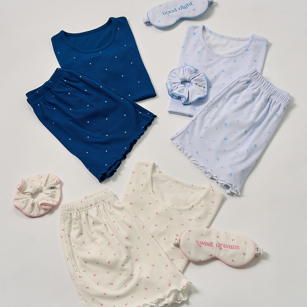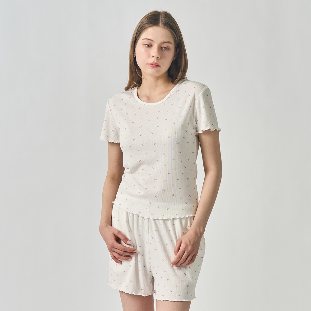 [etf] 울트라 스트레치 숏 프릴 파자마 세트 플라워 아이보리