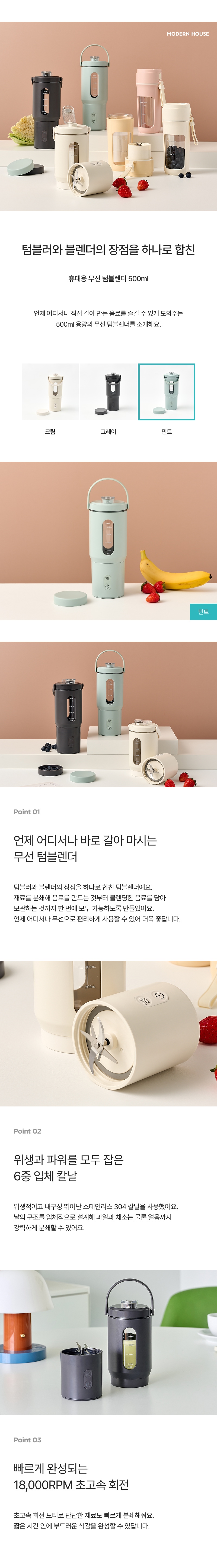 휴대용 무선 텀블렌더 500ml 민트