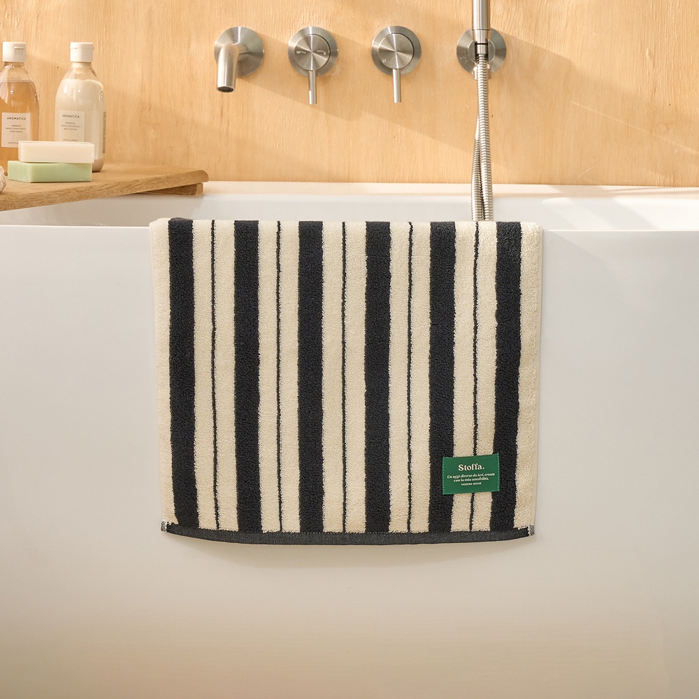 STF 더블 스트라이프 세면타월 BLACK 40X80cm 190g