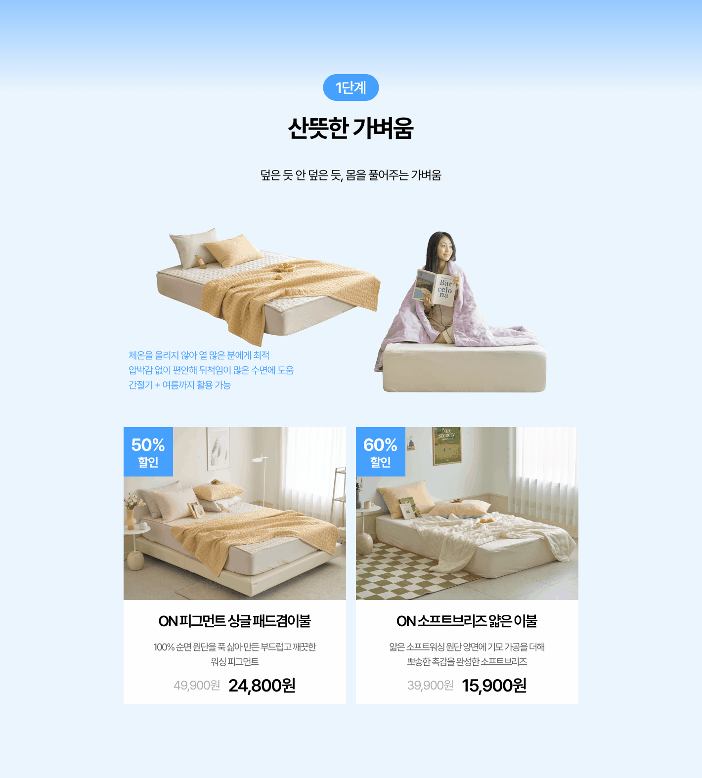 ON 피그먼트 싱글 패드겸이불 (5 colors) ON 소프트브리즈 얇은 이불 (6 colors)